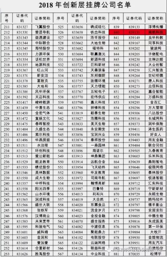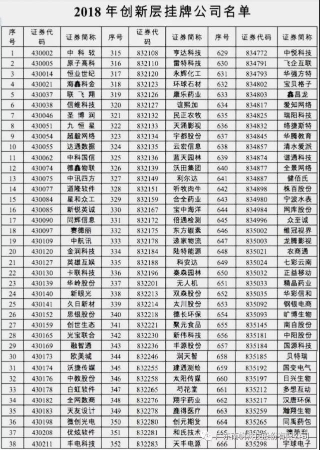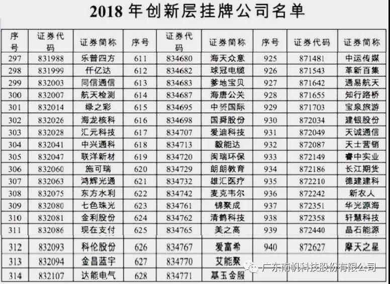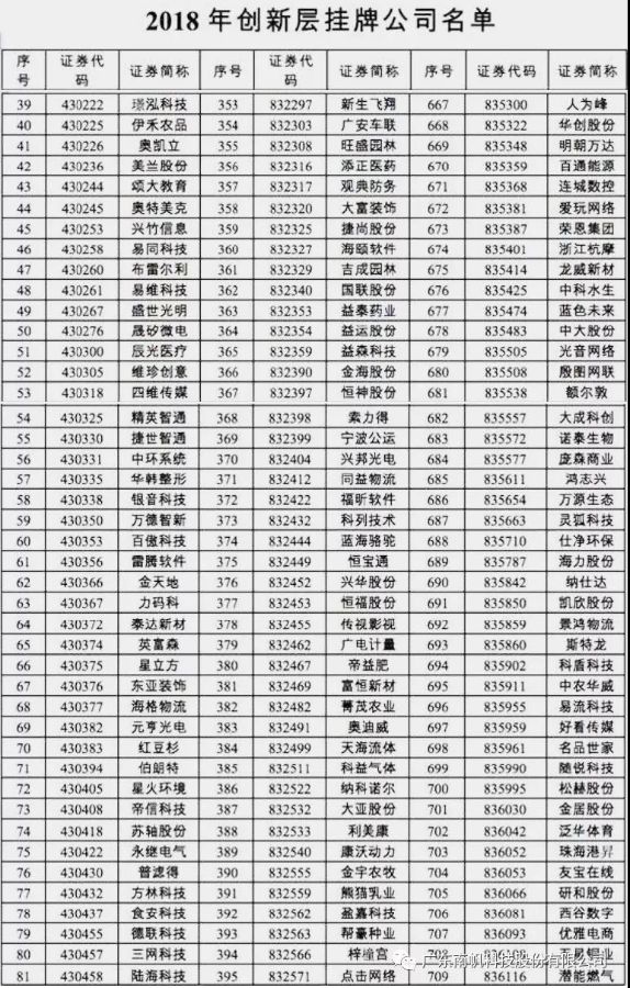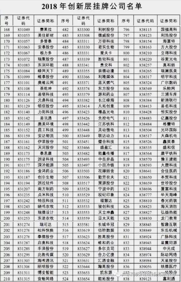 附件:2018年創新層掛牌公司名單截圖